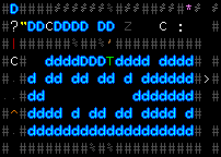 - Clear and colour-changing creatures are represented by the standard ASCII letter with a different coloured border. (White with a grey border for clear, shades of green for disenchanters, shades of blue for multi-hued.) This is what a multi-hued dragon pit looks like: