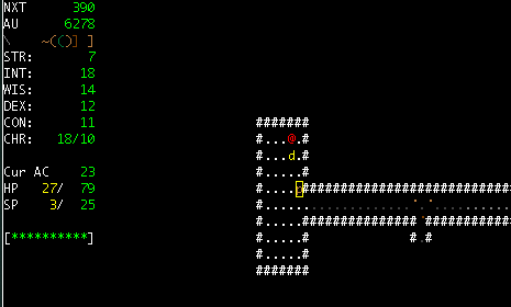 So the orc woke up, so I killed it, but then I had only 3 sp, so I phased away from Brodda into a room, where I found another Sleep Monster wand. I grabbed it, but then Brodda, evil creature that he is, hit me, and hit me, and hit me...