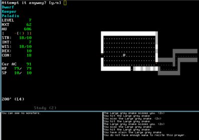 So on DL4 at CL7 I found ribbed plate armour. Put it on, it said I was encumbered but my displayed SP did not change. Still 10/10. I tried to cast call light (see screenshot) and it said you don't have enough mana, try anyway? I did the first time and permanently damaged my CON, lol. So yeah, probably my SP is in the negatives due to the armour would be my guess, but the game is not reporting it as such.