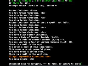 I haven't seen him yet, but Angband is an xmas tradition for me too. My husband and I are happily spending the day holed up in our office while he works on his latest valve amp build and I wait for my chance to kill Santa. We all have our own ways of celebrating the festive season!