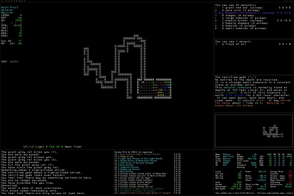 (A rogue with a very good weapon, immunity to fire, a nice compliment of wands, a _Banishment, and 45 speed is pretty damn tough, but not tough enough to take on three exceptionally fast Uniques, with one summoning more in the open.)