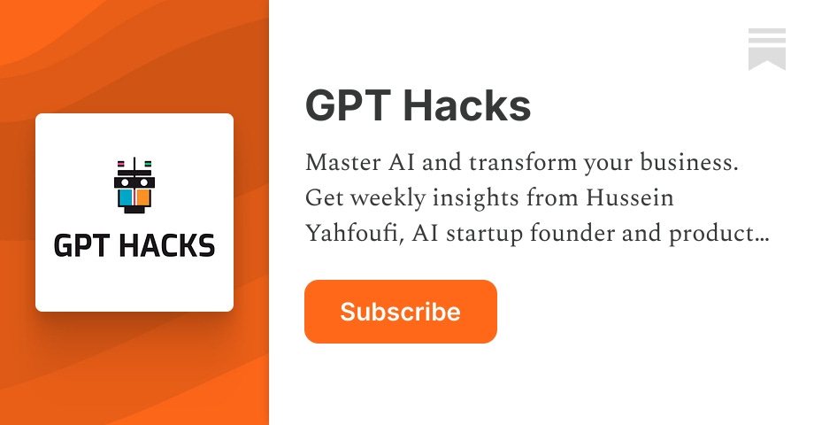 Master AI and transform your business. Get weekly insights from Hussein Yahfoufi, AI startup founder and product leader. . Click to read GPT Hacks, by Hussein Yahfoufi, a Substack publication with tens of thousands of subscribers.